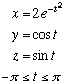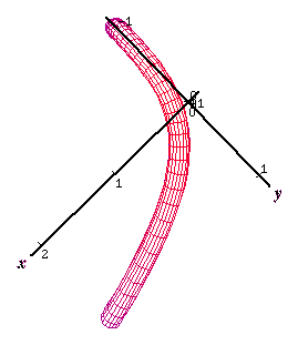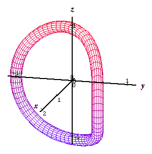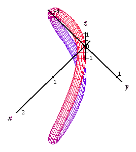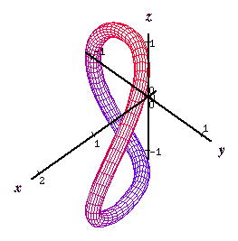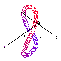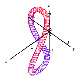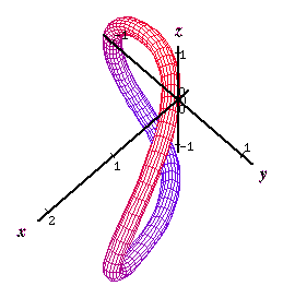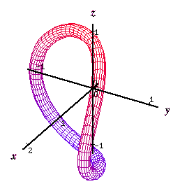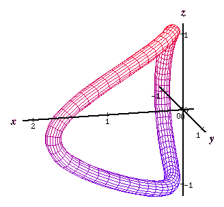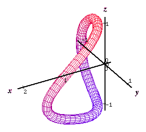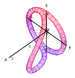 Maple has a feature called "tubeplot" which plots the curve as a hollow tube. See Figure 3. Notice how this feature especially helps in interpreting the apparent intersections of the curve. It is clear in this plot which portions of the curve are in front of others. We'll use this feature now to plot another space curve.