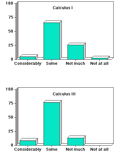 To learn whether the students thought things were going as well as we did, I surveyed a Calculus I class and a Calculus III (Multivariable Calculus) class. Among other things, I asked,