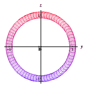 A tube plot of this curve is shown in Figure 4a. We tell the students to rotate the curve so that they are looking straight down each axis. Let's start by rotating the x -axis upward and to the right (see Figures 4b and 4c) until we see the projection of the curve onto the yz -plane (Figure 4d). As it should be, this is a circle.